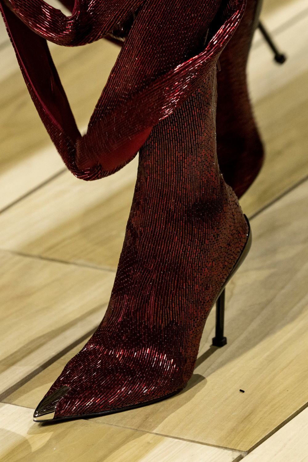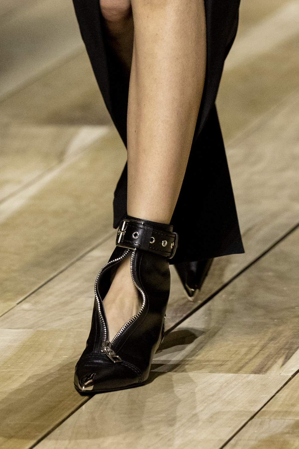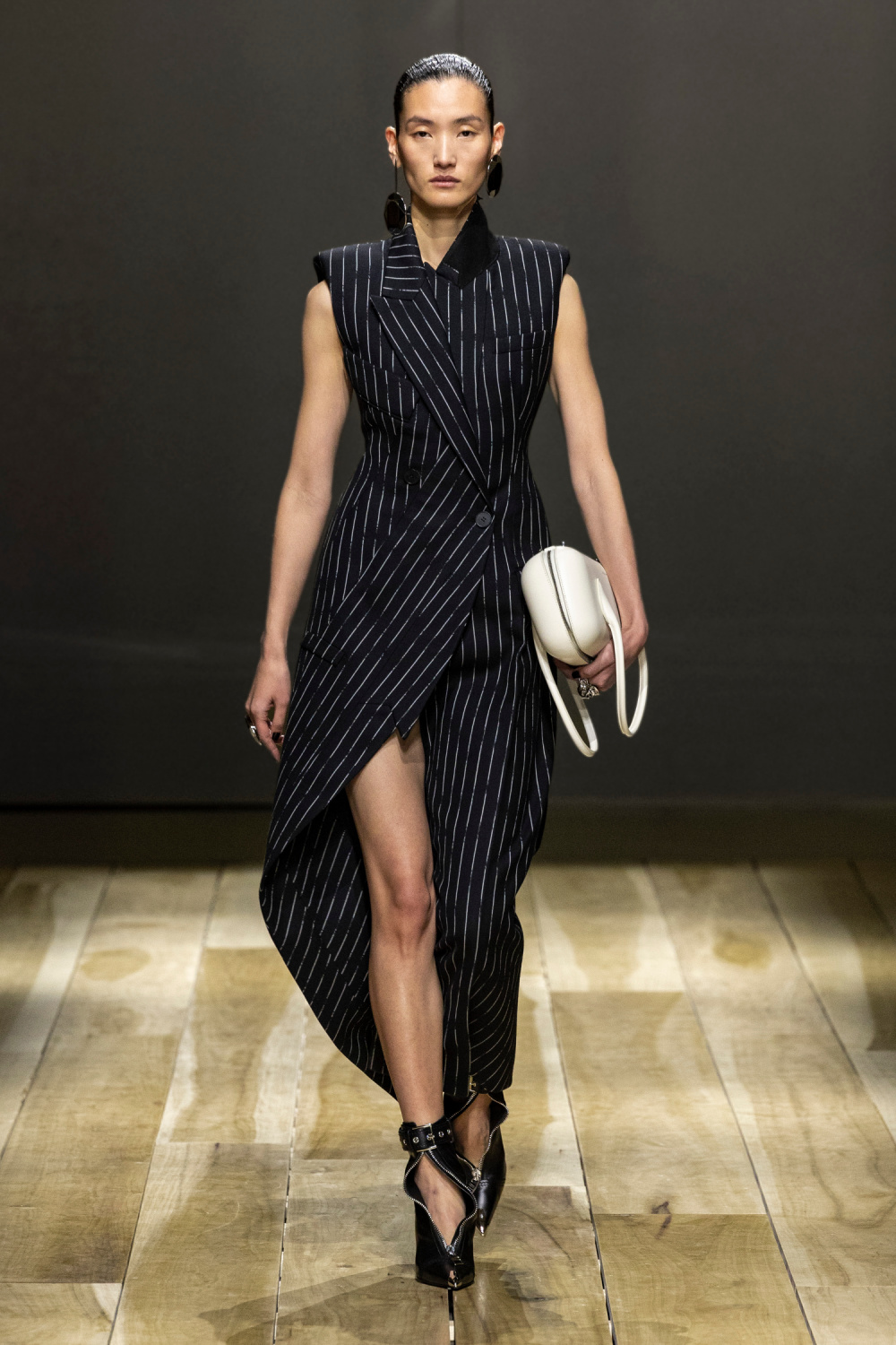 Garments are dissected: slashed, sliced and twisted. Shoulders are strong. Waists are narrow. Heeled trousers elongate the leg: the bumster in reverse. The most prominent motif in the collection is the orchid, in its rarer forms cultivated but, after the daisy, the most common flower. It thrives in the air, resists being rooted and grows in the wild. Extraordinarily beautiful and infinitely adaptable, the orchid mimics both predator and prey. In the language of flowers, the orchid is a symbol of love.” Sarah Burton, Creative Director