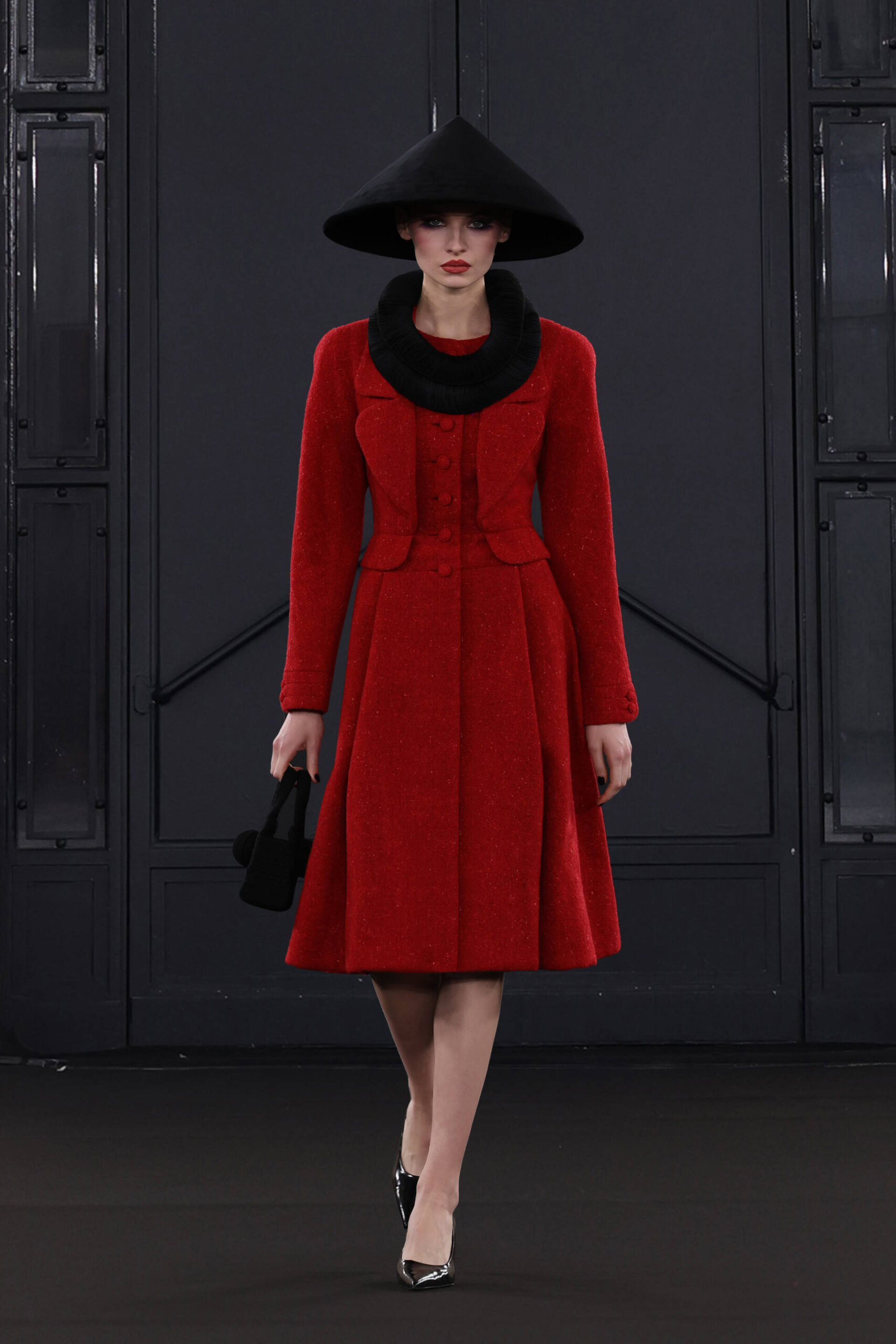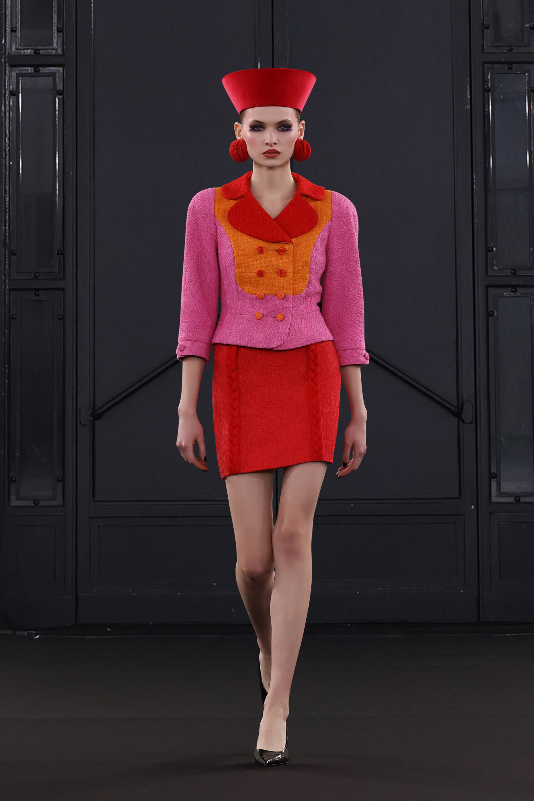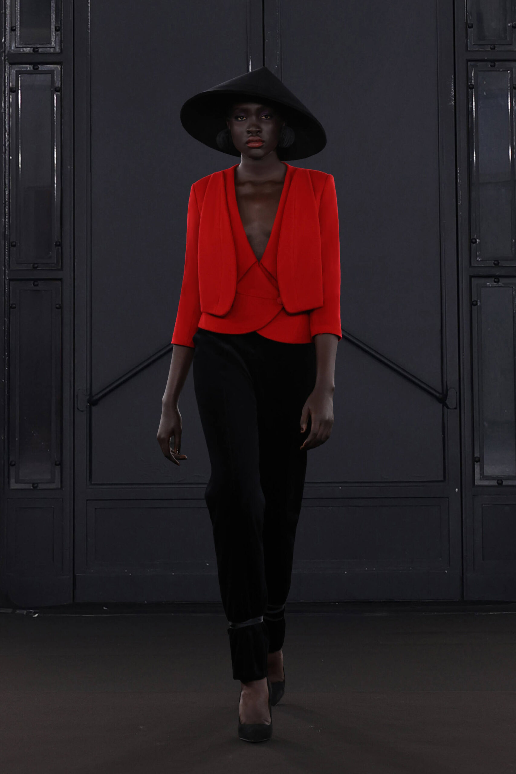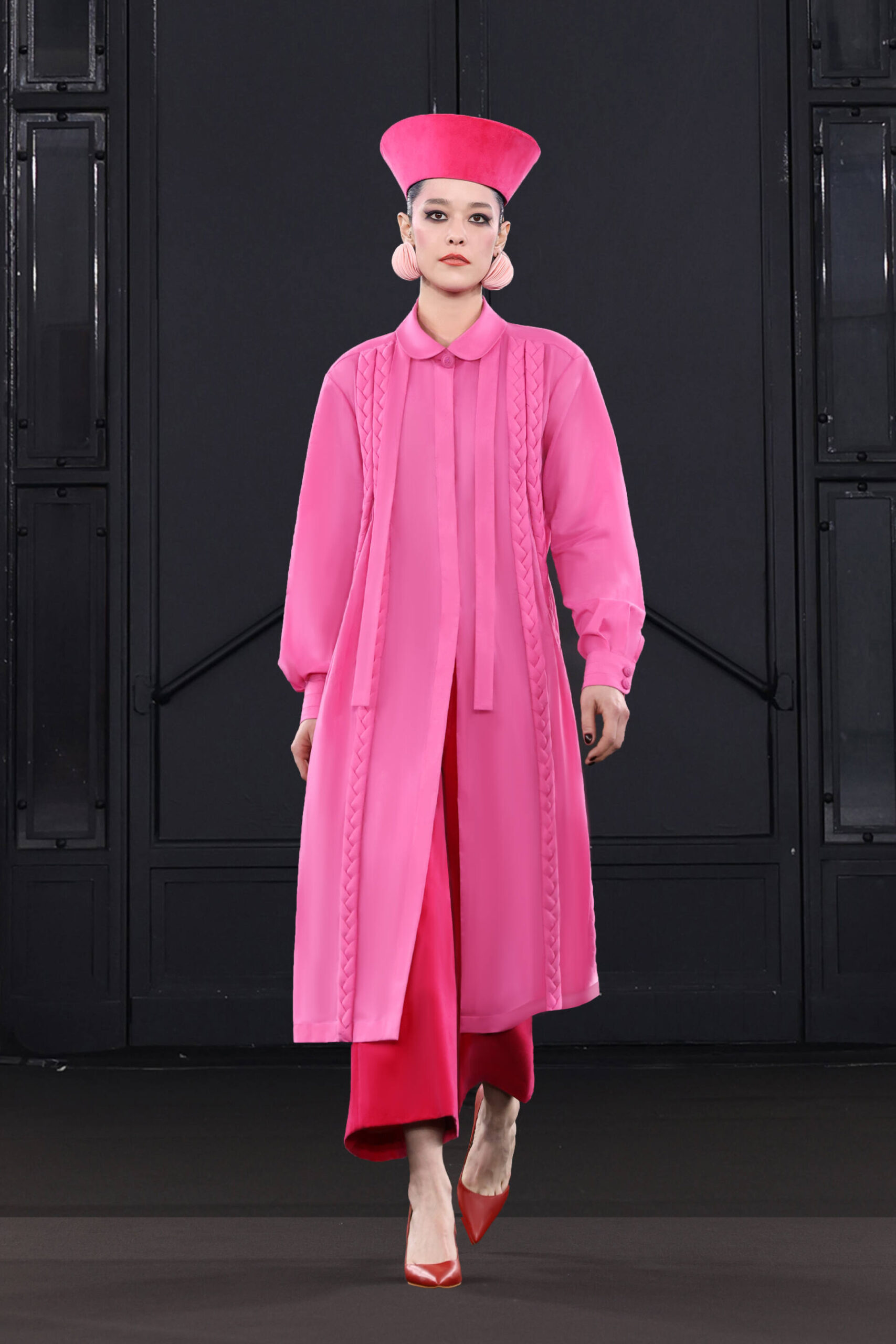 CHOCHENG presents a trans-seasonal collection bursting with the lively colors of cranberry and clementine, offering a wardrobe suitable for every occasion. Tailoring takes center stage, catering to discerning customers with an appreciation for craftsmanship and a desire for luxury. Inspired by Jeanne Moreau from “Diary of a Chambermaid,” Shirley Bassey, and the enigmatic M from James Bond, this collection embodies sophistication and intrigue.