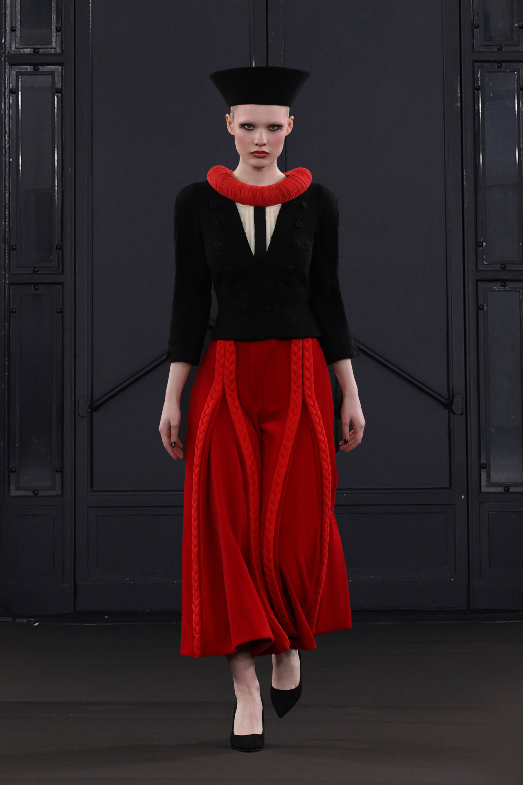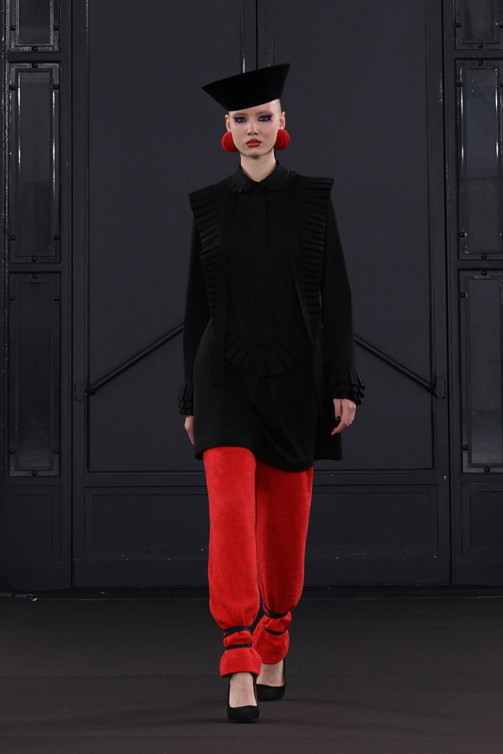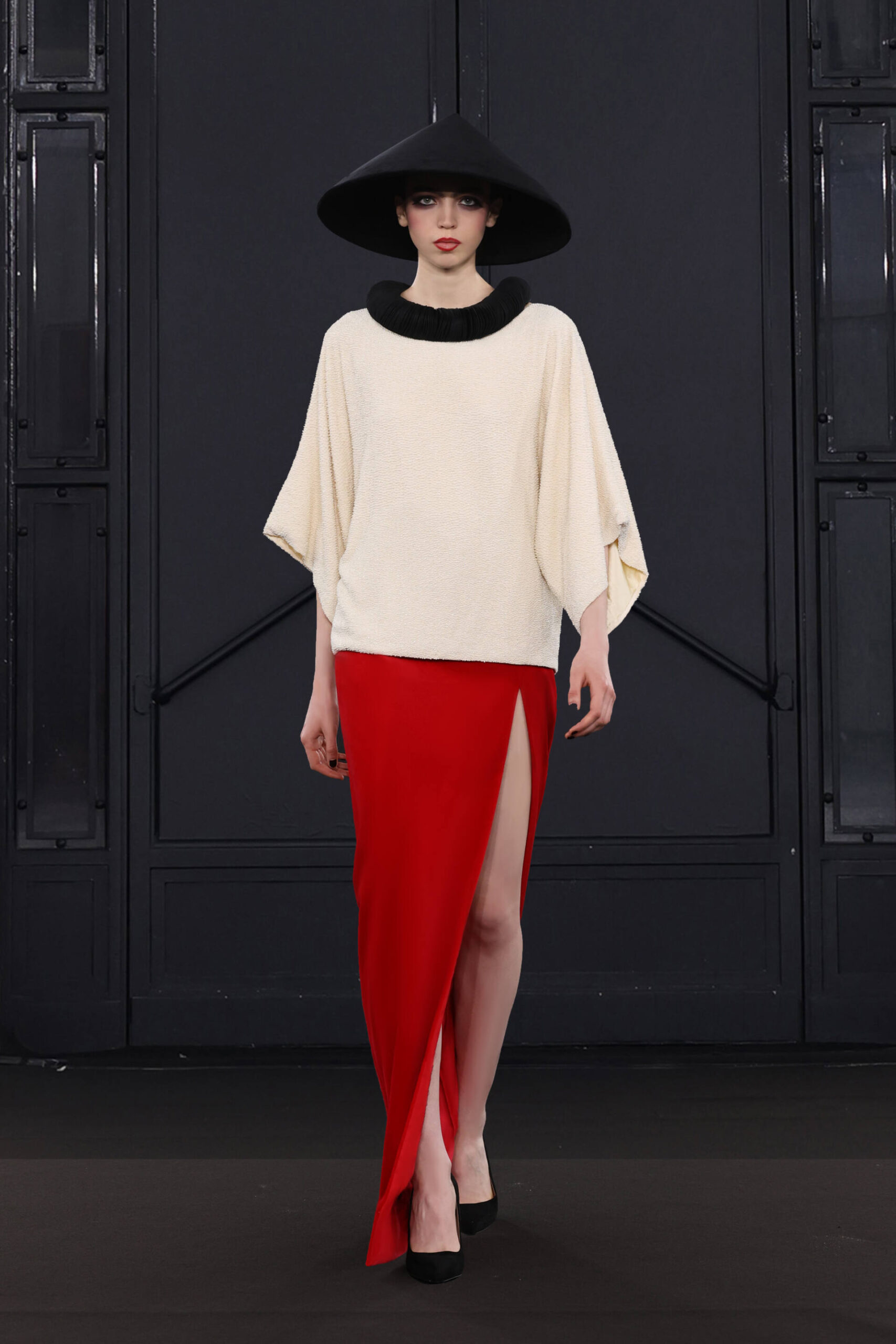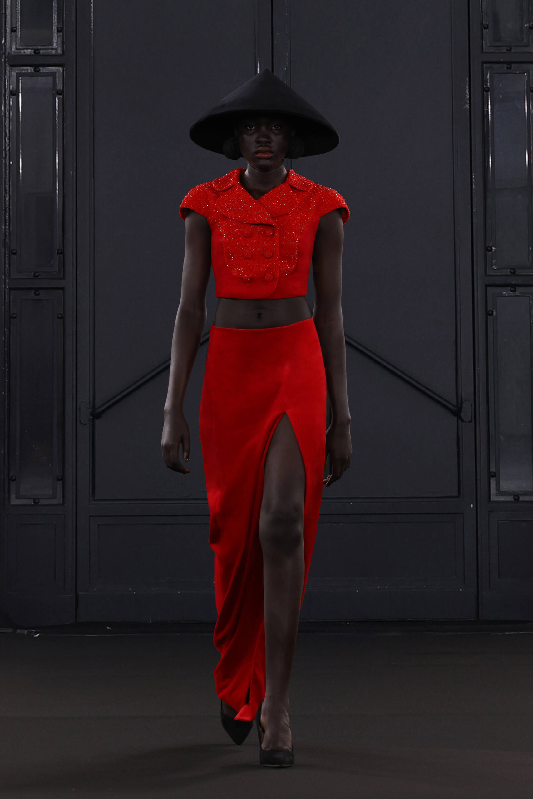 CHOCHENG presents a trans-seasonal collection bursting with the lively colors of cranberry and clementine, offering a wardrobe suitable for every occasion. Tailoring takes center stage, catering to discerning customers with an appreciation for craftsmanship and a desire for luxury. Inspired by Jeanne Moreau from “Diary of a Chambermaid,” Shirley Bassey, and the enigmatic M from James Bond, this collection embodies sophistication and intrigue.