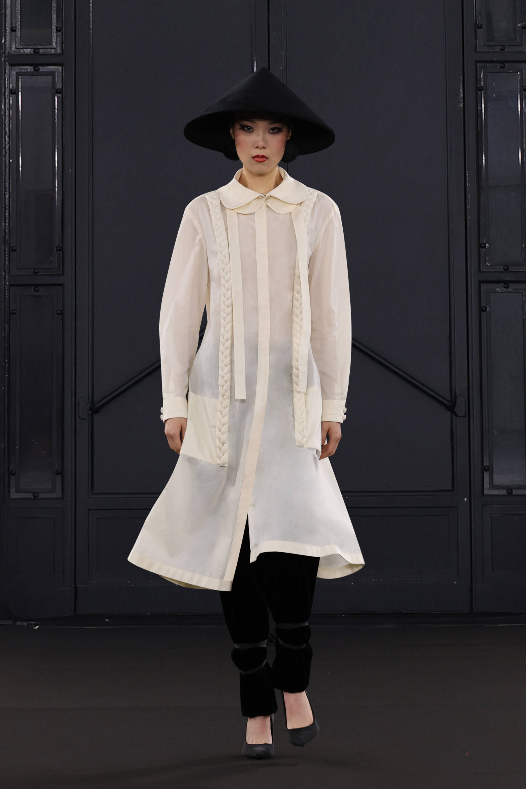 For the Autumn/Winter collection, CHOCHENG invites us to embark on a journey through the pages of “Diary of a Chambermaid,” following the transformation of an undercover agent into “M”, the Chief of the Secret Intelligence Service, a figure who precedes and ultimately oversees James Bond. “Mission Moreau”, a detective comedy-mystery is infused with the spirit of Jeanne Moreau, the iconic actor whose talent and style left an indelible mark on international cinema and continues to influence filmmakers and fashion designers alike.
