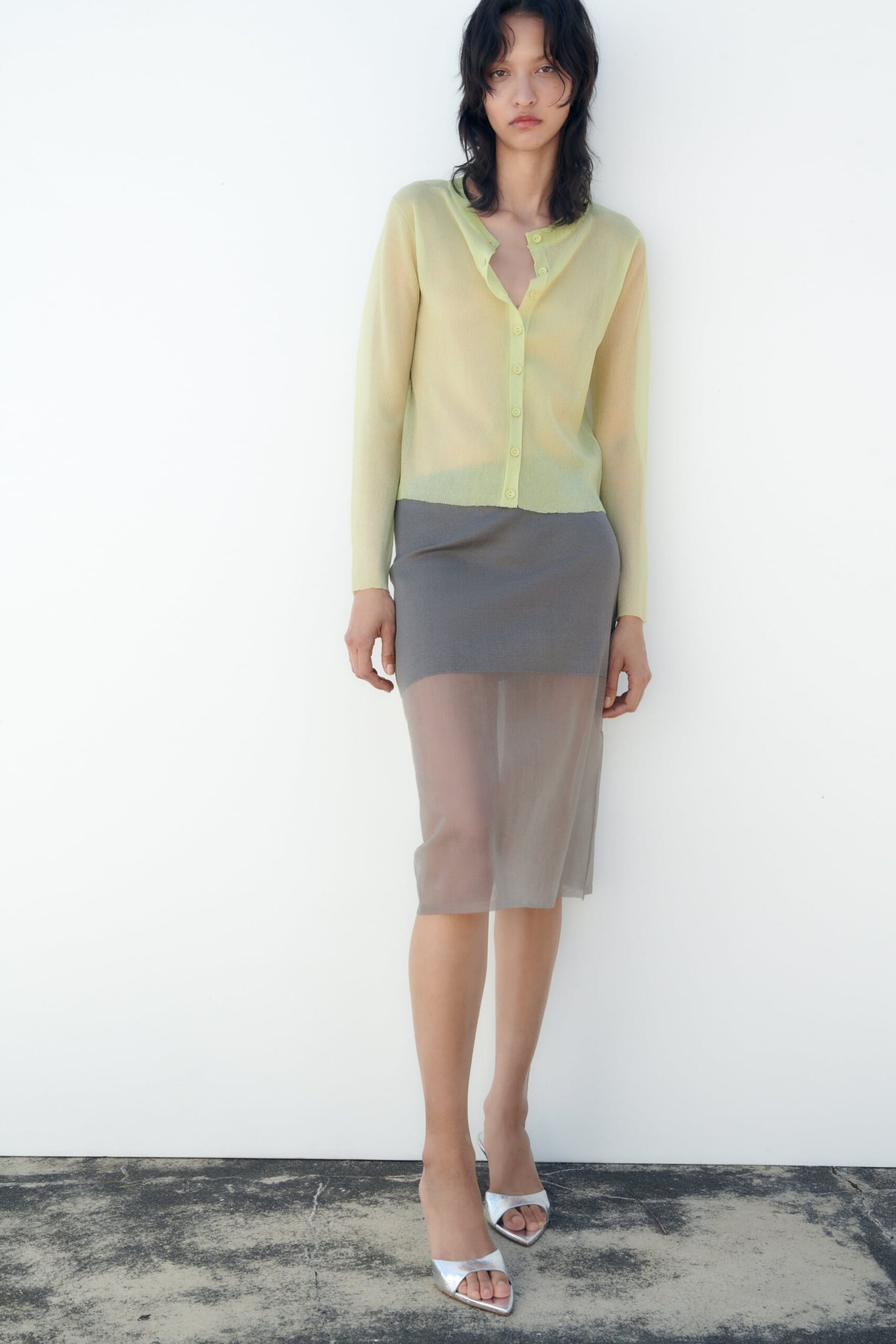 Purchase Now: Burberry Checked Sheer Playsuit US$2,139.56 Net-A-Porter | Semi Sheer Knit Cardigan S$69.90, Zara