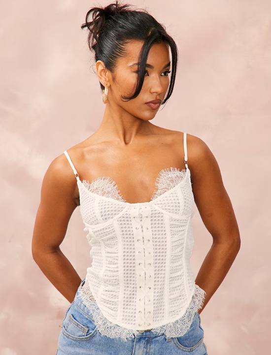 Purchase Now: Valentina Noir Lace Cocktail Dress, $564 Wolf & Badger | Lace Up White Textured Top £20, Pretty Little Thing