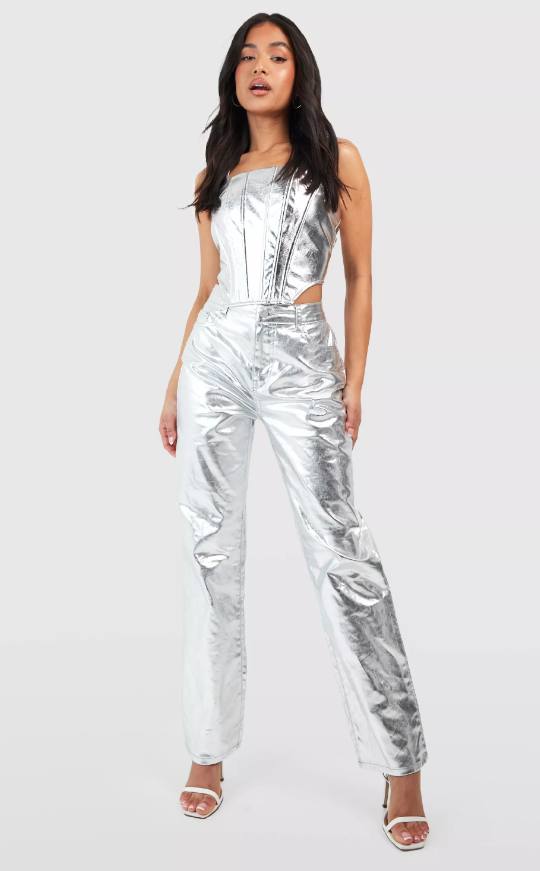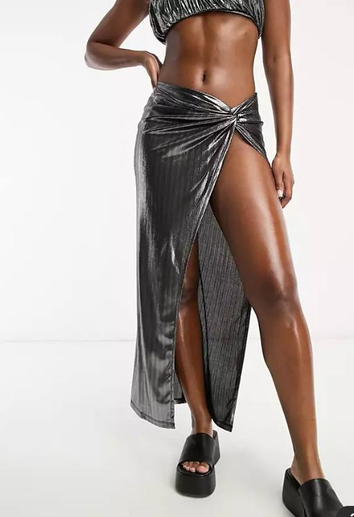 Purchase Now: Petite High-Rise Metallic Jeans, 31.50GBP, Boohoo.com | ASOS DESIGN asymmetric ruched metallic beach skirt, S$59.99
