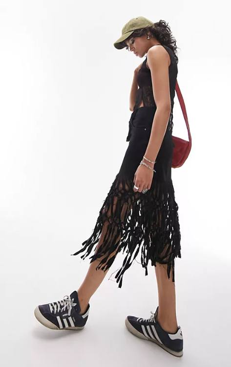 Fringing on clothing or accessories always makes life feel like a constant festival, which is exactly what we want for an eternal summer. From thin soft fringing to large coarse macrame worthy tassles, any fringe is a goal at this point. For a flattering fringe effect I’d suggest skirts and dresses, or perhaps cute crop tops with a small fringed hem.