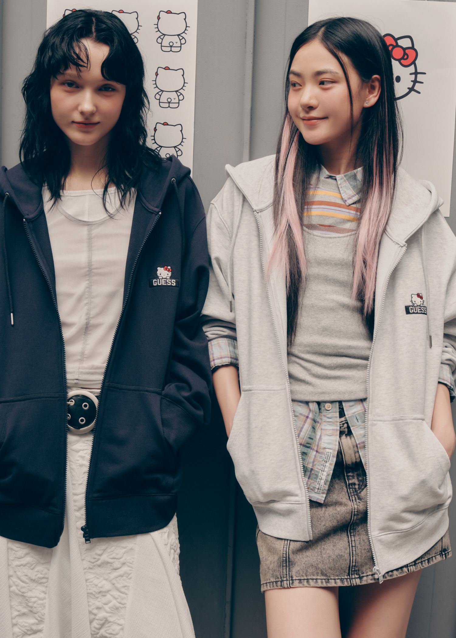 GUESS, the global lifestyle brand, announces the release of a limited-edition capsule collection celebrating the 50th anniversary of Sanrio’s beloved character, Hello Kitty. This capsule collection features playful artwork graphics and trendy designs.