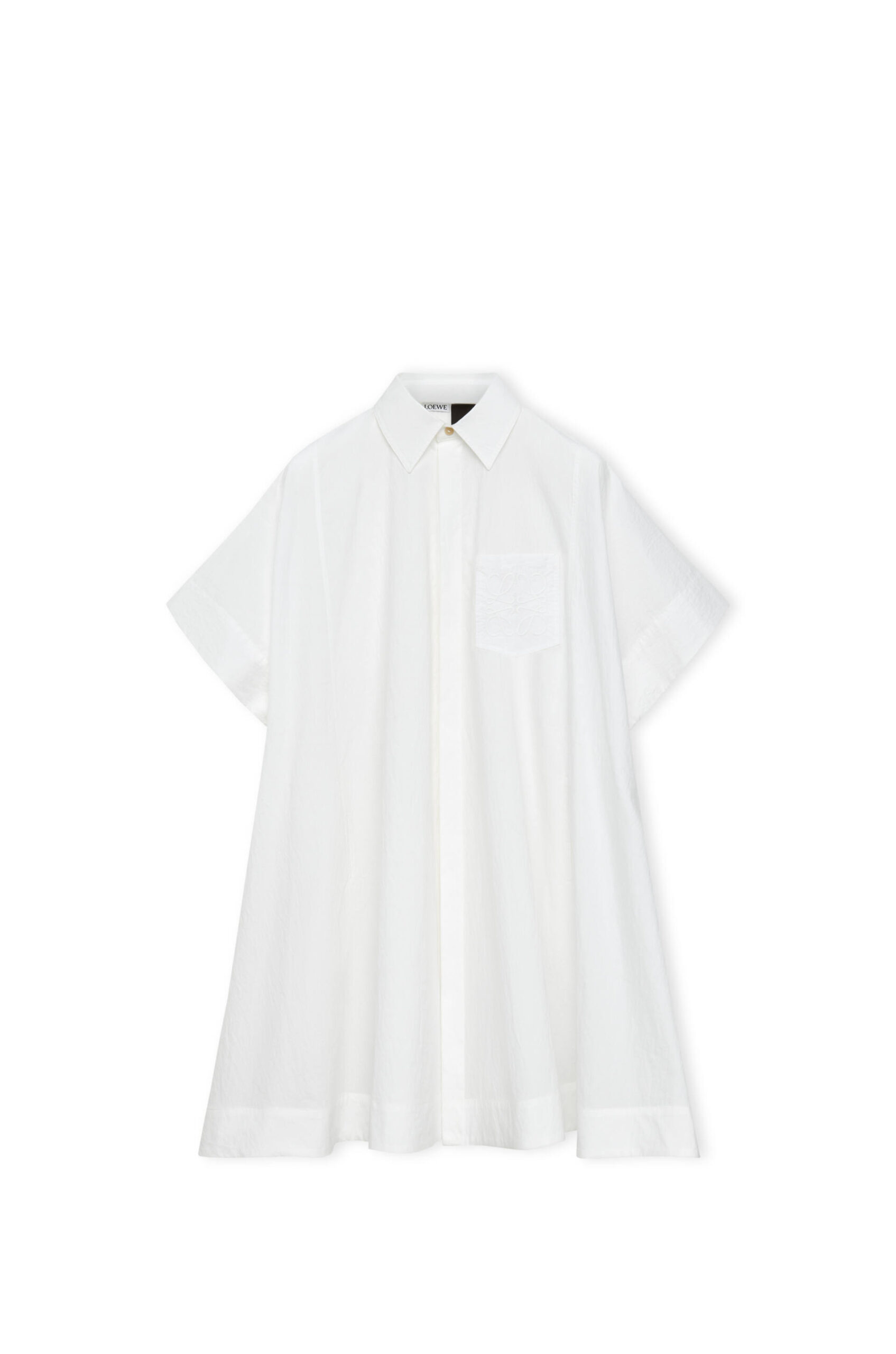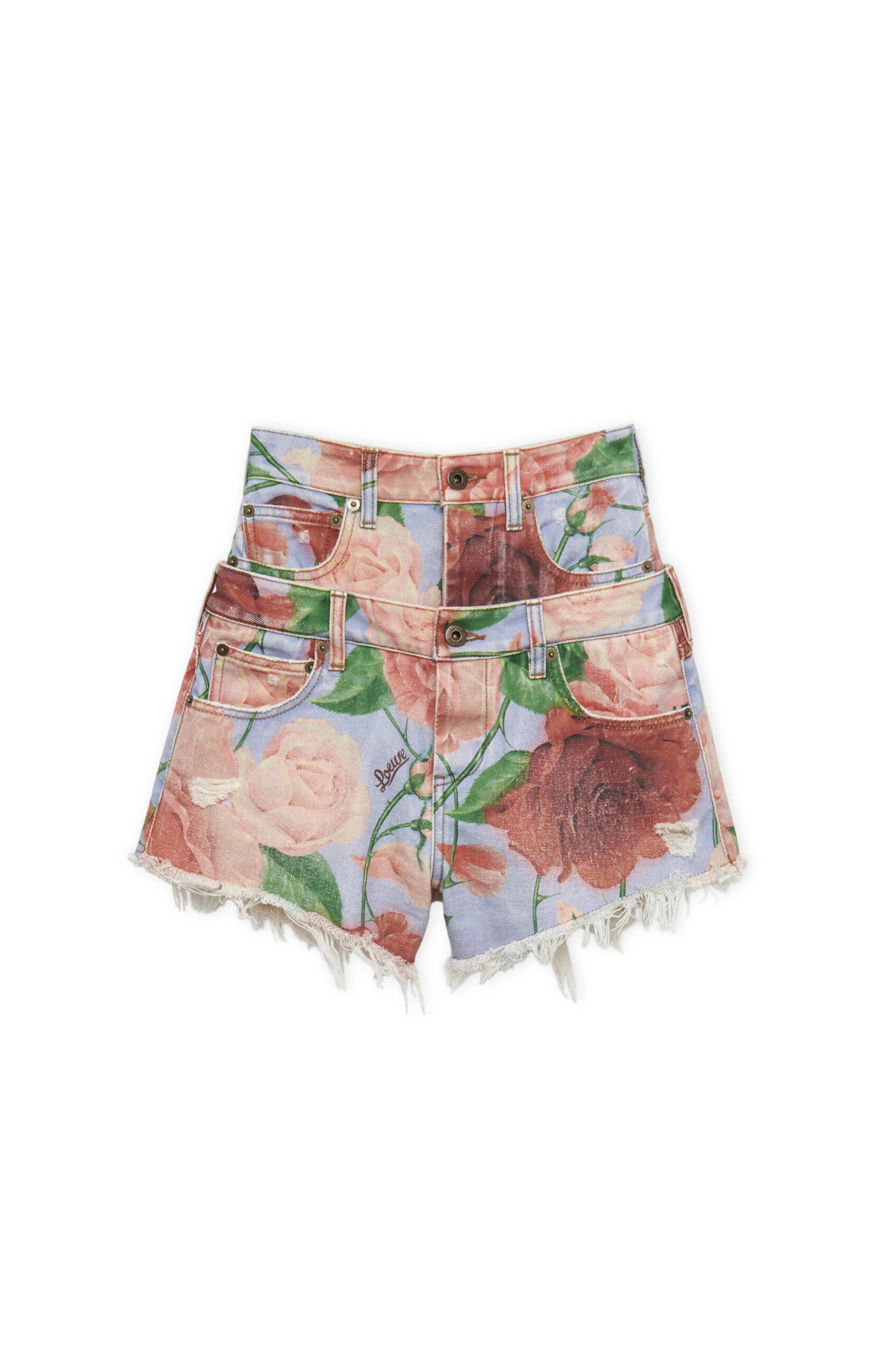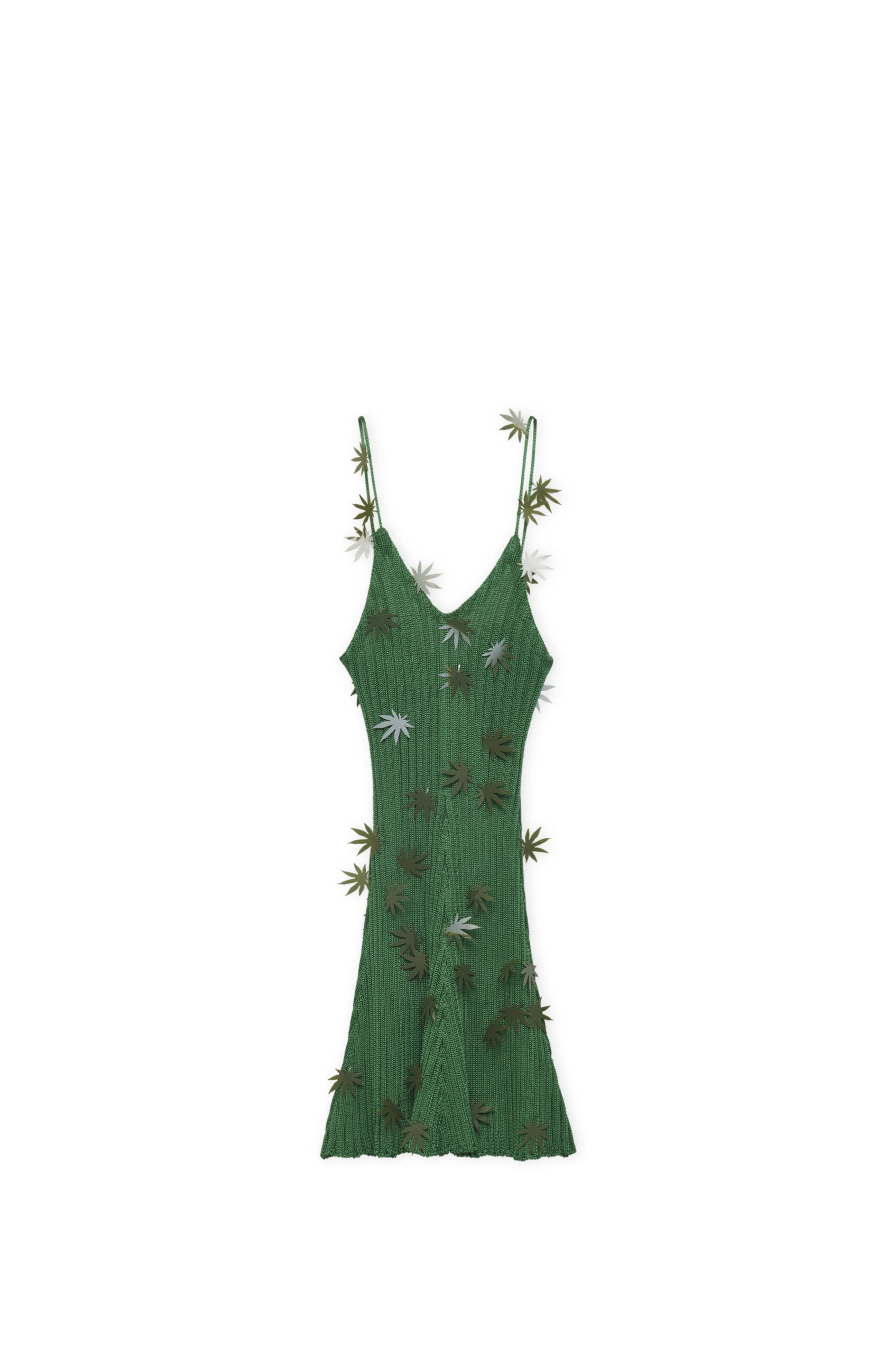 There is an ease to the pieces that makes them versatile and, with a stress on weaving, braiding and texture, aligns with LOEWE’s sense of craft. Polo shirts, skirts, dresses are made in crochet, and some of them feature leaf patches. Real alocasia leaves are morphed into tops. Solid surfaces inorganic tones are juxtaposed with vibrant prints. The LOEWE Anagram recurs as a motif, even on denim. Satin lambskin is cut into slinky dresses. Jersey tops are immediate and easy. Fringes dance along hemlines. Denim is a must for polos, Bermuda shorts, and micro shorts that are an epitome of freedom and ease.
