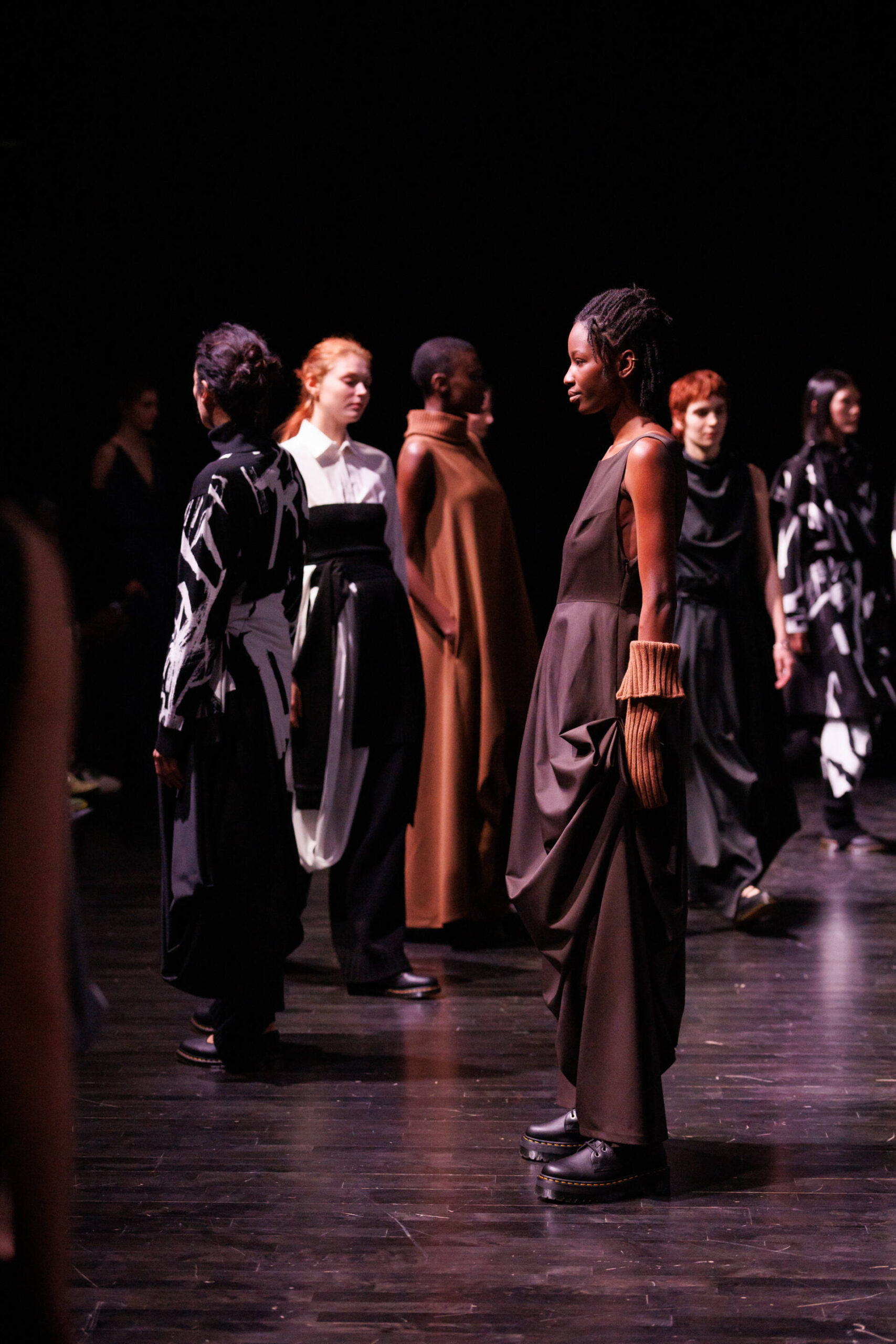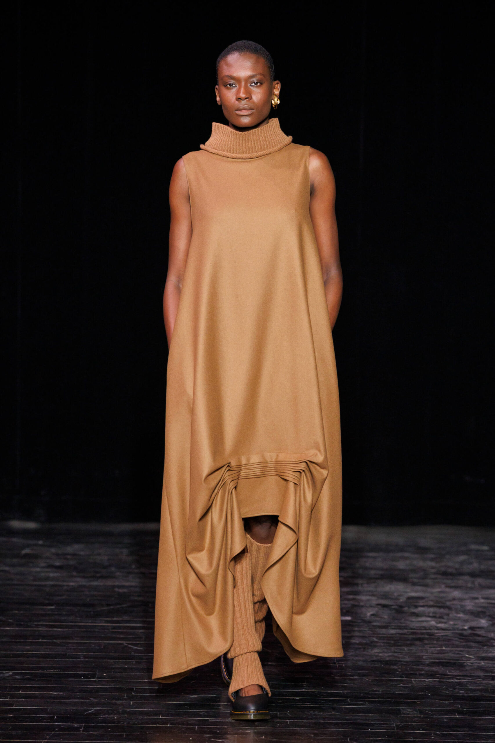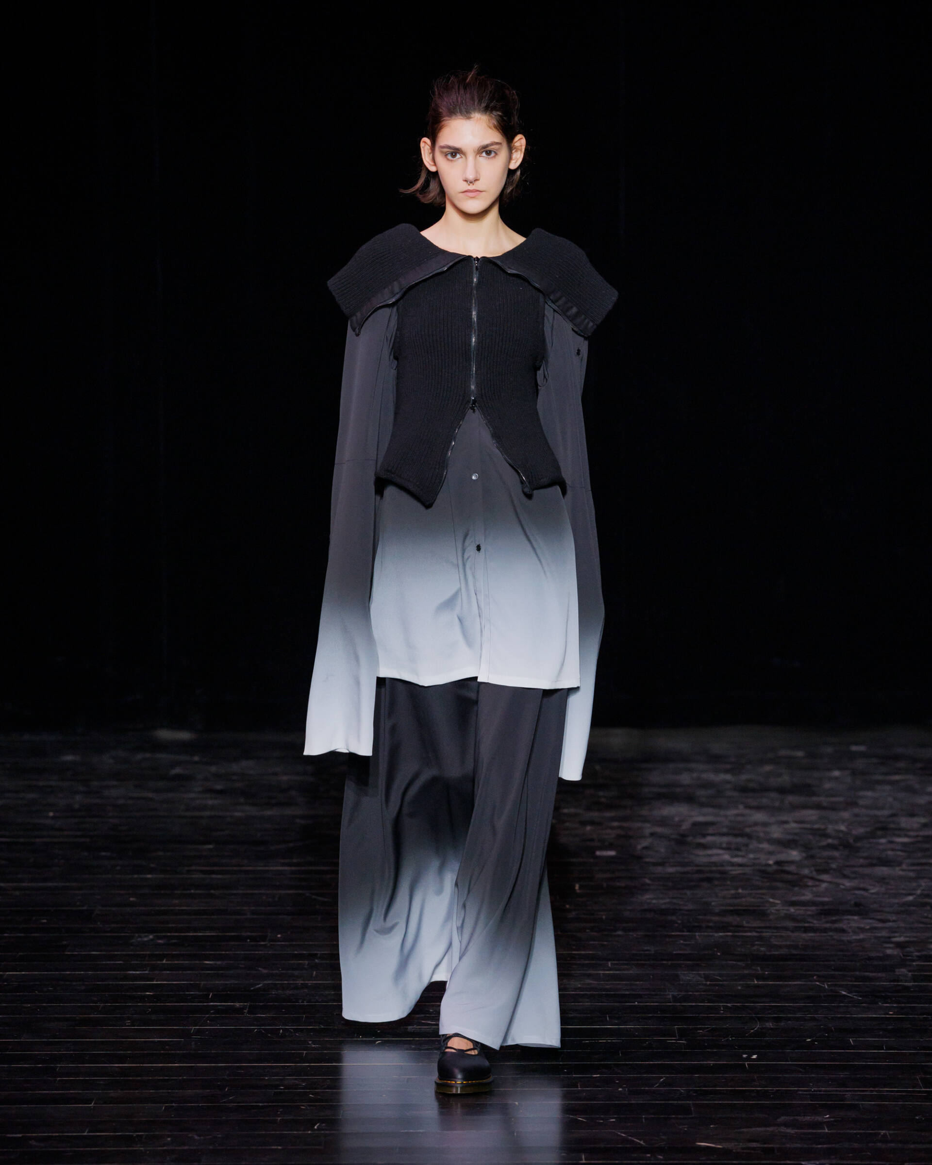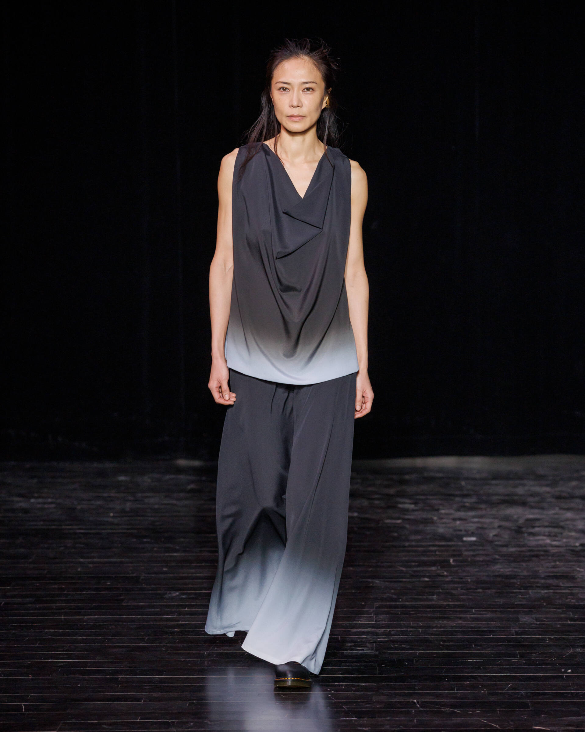 Through draping techniques, architectural pleats, and bold layering, each piece becomes a dialogue between structure and fluidity. MOSSI’s DNA is expressed through sculptural silhouettes, marked by asymmetry and deconstruction, which are key signatures of the house. This season, the signature pleats take new form as belts, while iconic elements from the MOSSI wardrobe subtly appear throughout the runway.