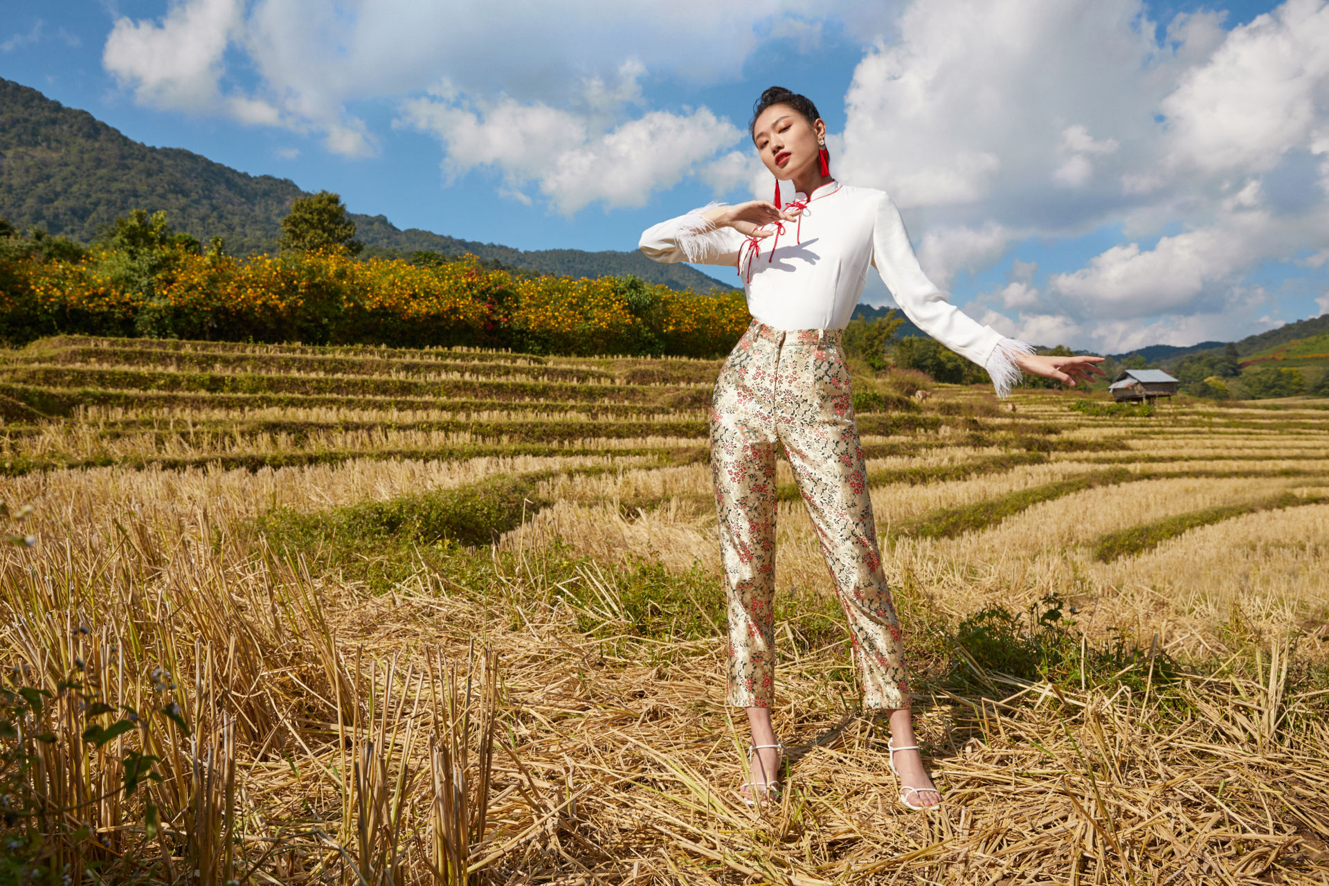 In honor of CNY, this collection features auspicious hues of scarlet red, champagne gold, off-white and hints of blue, an ideal palette to ring in endless fortune and success for the year ahead. Additionally, the collection presents a diverse line of silhouettes, from traditional qipao dresses, jumpsuits, statement blouses, to soft-tailored blazers, designed especially for the upcoming family gatherings.